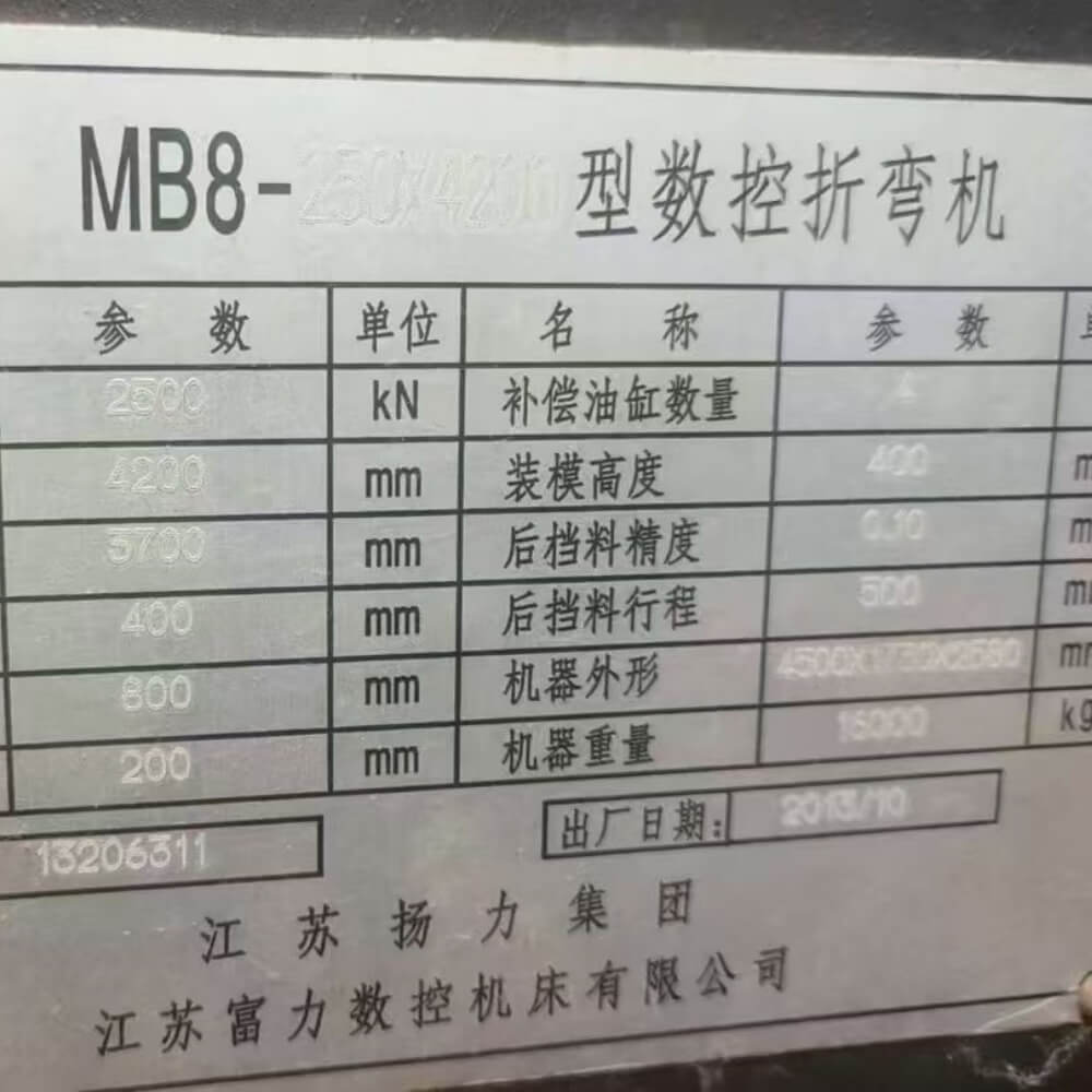 | Model | 250T×4200mm CNC Hydraulic Press Brake |
