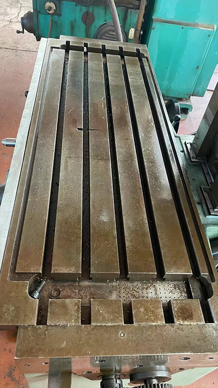 - The worktable is a rectangular cast iron platform with dimensions of approximately 1600mm × 400mm (length × width), larger than that of smaller models, enabling processing of larger workpieces. It is equipped with T-slots for clamping workpieces, vices, or fixtures (e.g., rotary tables, dividing heads).